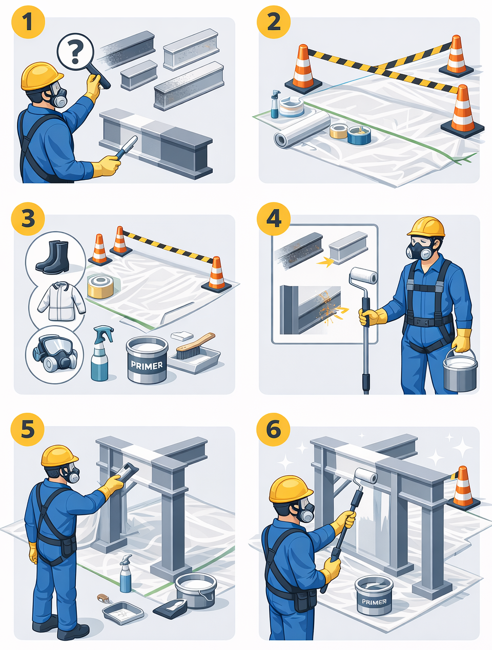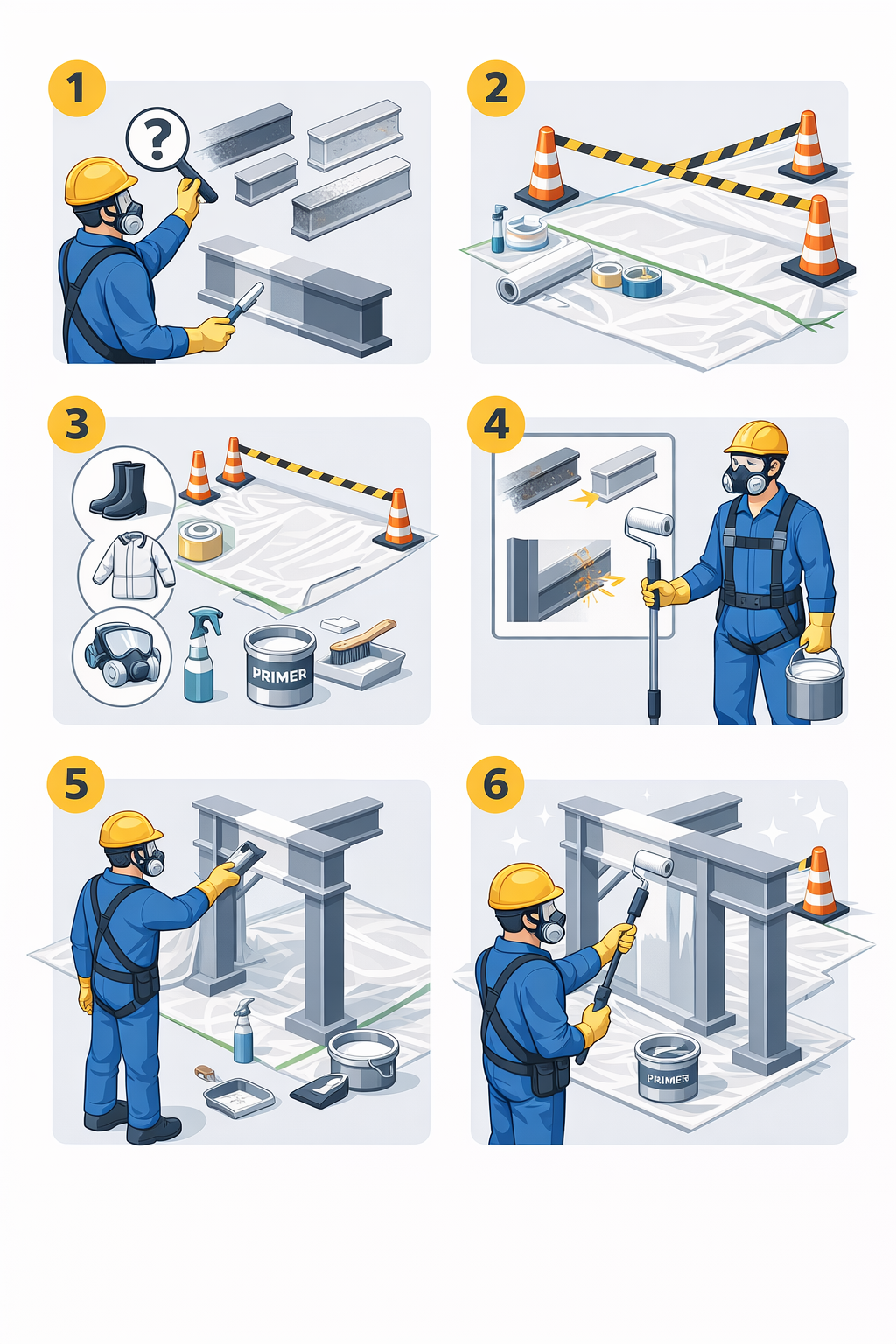 - Preparazione della superficie (rimozione ruggine/vecchia vernice + pulizia/sgrassaggio).